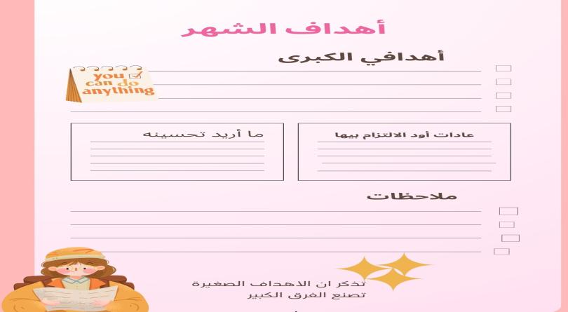 صفحة أهداف الشهر لتحديد أولوياتك.