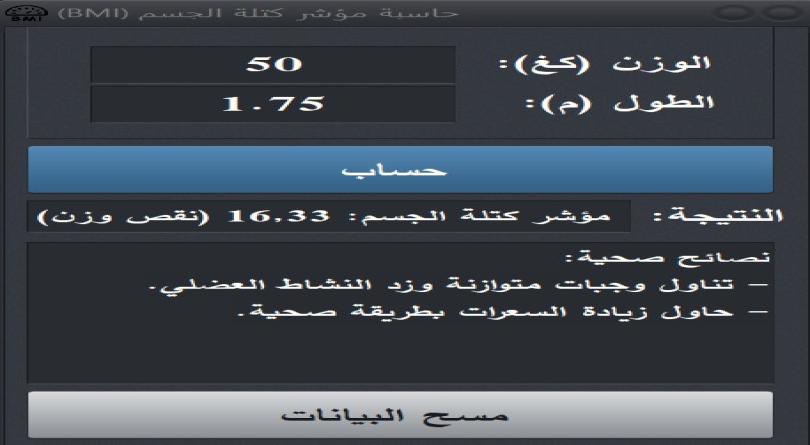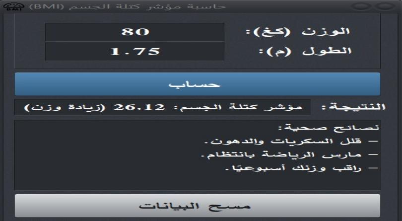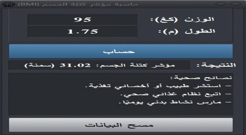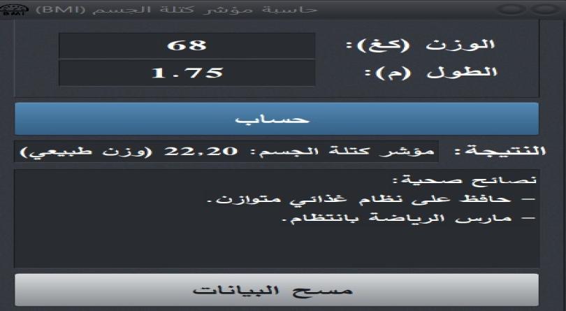 برنامج حاسبة مؤشر كتلة الجسم (BMI)