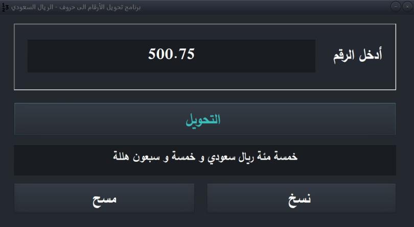 برنامج تحويل الأرقام الى حروف - الريال السعودي